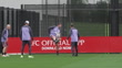 Jurgen Klopp (manager, Liverpool FC), Jack Robinson (assistant goalkeeping coach, Liverpool FC) and Claudio Taffarel (goalkeeping coach) joined by John Achterberg (head of goalkeeping, Liverpool FC) playing kick-ups