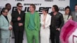 LOS ANGELES, CALIFORNIA – AUGUST 1: (L-R) Logan Lerman, Masi Oka, Hiroyuki Sanada, Brian Tyree Henry, Bad Bunny, Brad Pitt, Joey King, Aaron Taylor-Johnson, Zazie Beetz, David Leitch, Kelly McCormick and Andrea Muñoz arrive at the Los Angeles Premiere Of Columbia Pictures' "Bullet Train" at Regency Village Theatre on August 1, 2022 in Los Angeles, California. (Footage by Adam Finmann/Getty Images)
