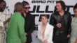 LOS ANGELES, CALIFORNIA – AUGUST 1: (L-R) Logan Lerman, Masi Oka, Hiroyuki Sanada, Brian Tyree Henry, Brad Pitt, Bad Bunny, Joey King, Aaron Taylor-Johnson, Zazie Beetz, David Leitch, Kelly McCormick and Andrea Muñoz arrive at the Los Angeles Premiere Of Columbia Pictures' "Bullet Train" at Regency Village Theatre on August 1, 2022 in Los Angeles, California. (Footage by Adam Finmann/Getty Images)