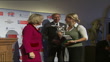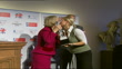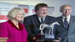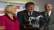 Camilla presenting Equestrian Olympic Athlete of the Year trophy to Phillips as stand with David Hemery (Vice-Chairman of the British Olympic Association).