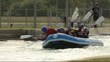 Raft being paddled along white water course being followed by a member of the Austrian national kayaking squad