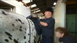 Lee Pearson CBE (Para-Equestrian) getting onto horse with help from trainer