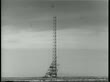 B/W 1952 long shot launch tower for rocket carrying monkey + mice / White Sands, NM / newsreel