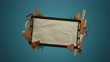 Christmas themed baking background with gingerbread cookies, kitchen utensils and an oven tray floating in mid-air.
