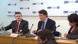 Lord Mandelson, Ian Pearson and Shriti Vadera press conference; Lord Mandelson, Baroness Vadera and Pearson into room for press conference and taking seats / Cutaways of question and answer session at end of press conference