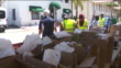 Volunteers giving out boxes with food prepared by Yasiel Puig’s Foundation