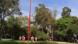 MEXICO CITY, MEXICO - JULY 17: Los Voladores De Papantla (Flying Men Of Papantla) walk to the rhythm of the music during a ritual ceremony at the Chapultepec Forest on July 17, 2022 in Mexico City, Mexico. This ritual ceremony of the Totonac, originally from the state of Veracruz, aims to express respect for nature and the universe. (Footage by Vincent Isore/IP3/Getty Images)