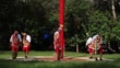 MEXICO CITY, MEXICO - JULY 17: Los Voladores De Papantla (Flying Men Of Papantla) walk to the rhythm of the music during a ritual ceremony at the Chapultepec Forest on July 17, 2022 in Mexico City, Mexico. This ritual ceremony of the Totonac, originally from the state of Veracruz, aims to express respect for nature and the universe. (Footage by Vincent Isore/IP3/Getty Images)