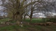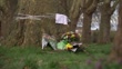 Floral tributes left by tree in park