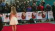 Posters on crash barriers / Lily Laight (Child Actress) posing on red carpet and interview SOT / Christian Cooke (actor) interview SOT