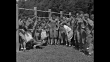 Title card: "Love Taps Out! Football change on use of hands told by George Washington U. coach" / MS football coach Jim Pixlee at George Washington University describing changes in rules of the game to attentive team members on practice field / MS Pixlee demonstrating on a player some forbidden moves with his hands, moves to player's head, throat and shoulder / Note: exact day not known