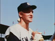 1964 low angle close up PAN Yankees Roger Maris, Mickey Mantle + Joe Pepitone posing with bats / industrial