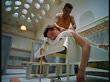 Low angle man lying on table getting massage from another man in Turkish bath / Istanbul, Turkey - stock video