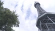 Low angle panning view: Petrin lookout tower, Prague - 4K stock video