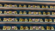Several chinese Lucky cats on display together, this is a group of Lucky charms all together, moving the arm of the small lucky cat charms, a continuous video about lucky charms.