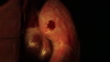 A lung fluke worm expands inside a lung in a computer-generated animation.