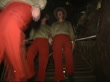 Three 'Celebrity' contestants, Mike Read, Neil 'Razor' Ruddock and Lord Brockett, down stairs