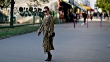 Madelynn Furlong wearing dress with print is seen outside Koche during Paris Fashion Week Womenswear Spring/Summer 2019 on September 25, 2018 in Paris, France.