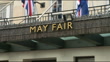 'Magic Mike' film premiere; ENGLAND: London: EXTSign outside May Fair hotel / Screaming girls chanting 'Charlie' SOT / Screaming fans holding signs and photographs / Hotel exterior with crowd outside INT*** WARNING SOME FLASH PHOTOGRAPHY ***Promotional poster for 'Magic Mike' / 'Dream Idols' sign over stage / Roxanne Pallett posing for press and Dream Idols arriving / Dream Idols posing for press wearing 'Magic Mike' t-shirts / Guests at event / Dream Idols chatting to press / Dream Idols onto stage to music and performing dance in rain macs and performing striptease using coats as a prop to whoops from crowd / Photographers taking pictures