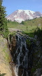 4k video footage of summer colourful landscape in mt Rainier National park - view of famous Myrtle falls and the mountain with glacier on the background