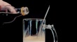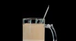 Making a Root beer float by pouring root beer, scooping ice cream into a glass mug on a black background with copy space.