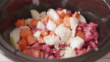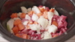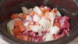 close up view of making beef stew by using slow cooker