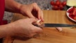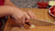 April 7, 2020 - Granda, Spain: Chopping and cooking ingredients to make homemade ratatouille