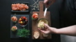 Making salmon bites - 4K stock video