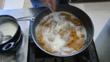 Roast semolina and white flour in melted butter in a pan and add milk.