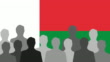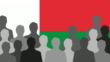 Black and white men silhouettes popping up in front of a Malagasy flag