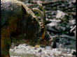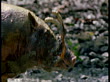 Male babirusa covered in mud wades through dirt, Sulawesi (Core Number: NBSK806F)