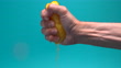 male hand squeezes an orange