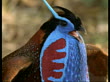 Male Temminck's tragopan pheasant displays and chases female round tree in forest, India (Core Number: NBSK467R)