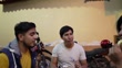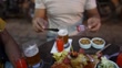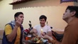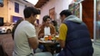 Male traveler friends eating on outdoors restaurant in Cusco, Peru - 4K stock video