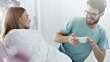 Man bringing warm soup to woman who having flu - 4K stock video