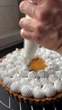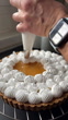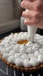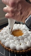 Man decorating homemade lemon meringue tart (Tarte au citron meringuée) - 4K stock video