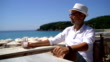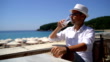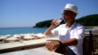 Man drinking on beach terrace - HD stock video
