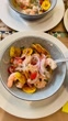 Man eating shrimp ceviche at Peruvian restaurant, personal perspective view - 4K stock video