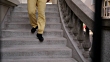 Man going down stone stairway