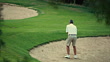 WS Man hitting golf ball out of sand pit with wedge / Palma de Mallorca, Mallorca, Baleares, Spain - HD stock video