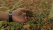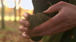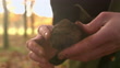 A man holds a newly discovered black truffle in a woodland in the UK. (FKAC235A - 333269)
