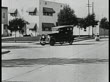 B/W 1923 man (Snub Pollard) in mini-car following car on street / car turns corner / feature - stock video
