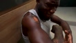 Man in Pain From Burns on His Arm and Leg Sitting on Bathroom Floor - HD stock video