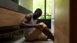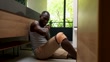 Man in Pain Sits on Bathroom Floor Holding His Injured Knee with Bandages - HD stock video