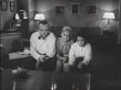 B/W 1956 man joins 2 teen girls watching tv bouncing + swaying to music - stock video