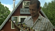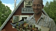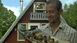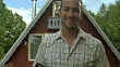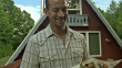 CU, Man presenting shish kabobs on platter outside cabin, Fish Creek, Wisconsin, USA - HD stock video