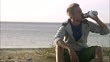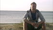 A man resting after jogging on the beach Malmo Sweden. - HD stock video