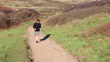 Man (50-55 year old) running through Woolacombe dunes - 4K stock video
