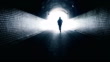 Man running toward light