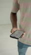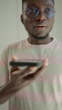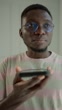 Young man using his smartphone to browse the internet or use voice search, looking for a fast solution to a problem